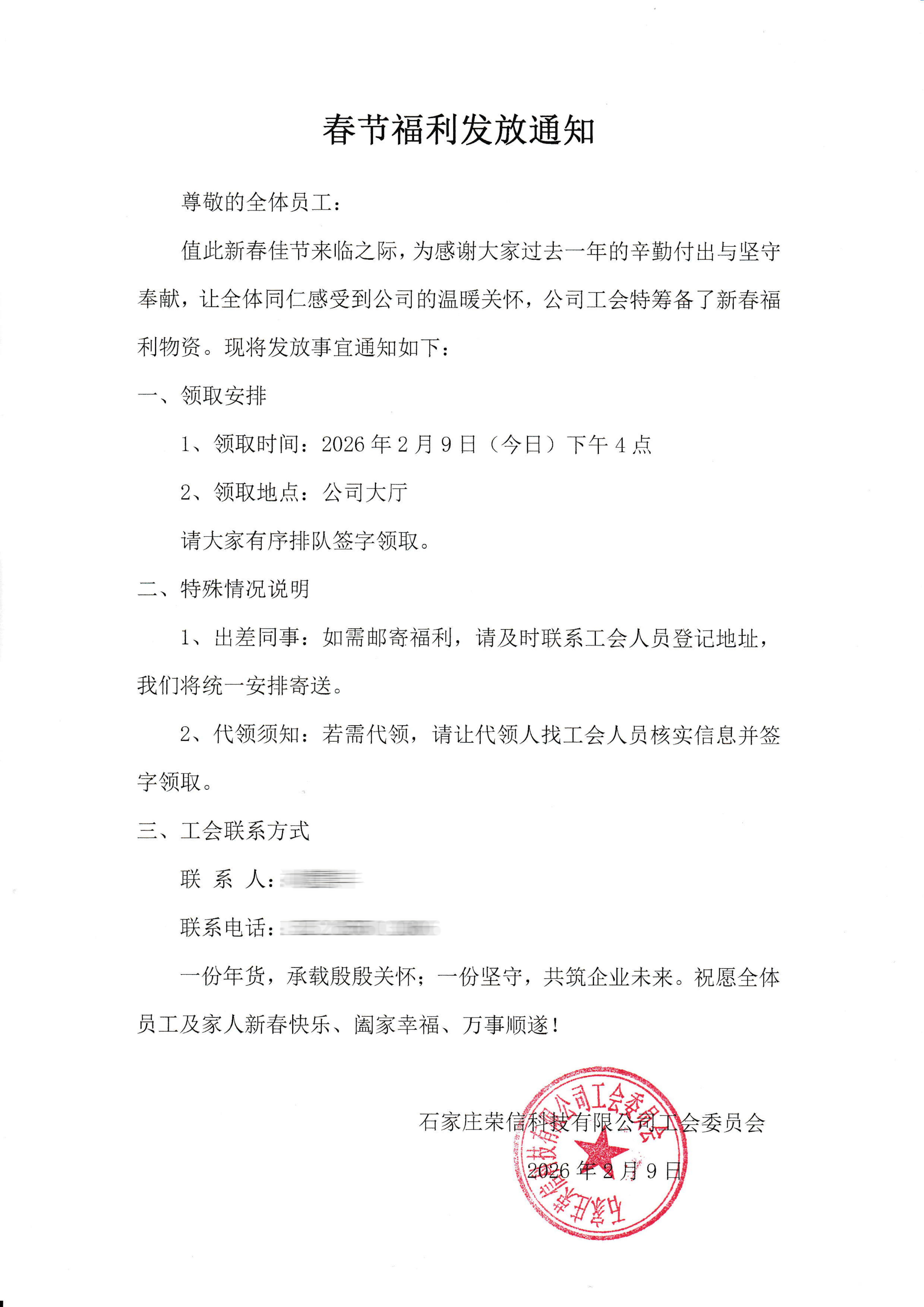 春節(jié)福利發(fā)放通知